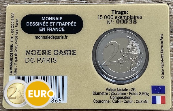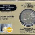 This special 2 euro commemorative coin honors Notre-Dame de Paris on the occasion of the completion of its restoration following the devastating 2019 fire. A Gothic masterpiece and symbol of French history and culture, it once again shines in all its glory.