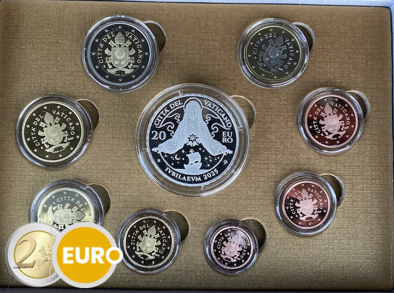 With the coins from 1 cent to 2 euro + 20 euro silver Pope Francis Holy Year 2025