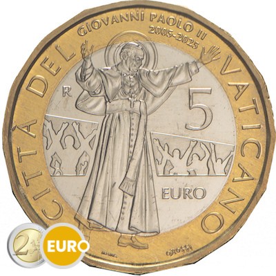 Avec les pièces de 1 cent à 2 euros + 5 euros 20e anniversaire de la mort de Jean-Paul II