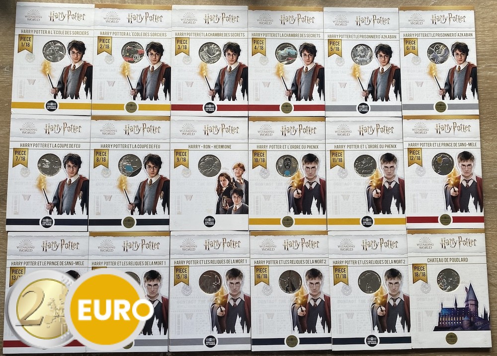 18 x 10 euro + 4 x 50 euro commemorative zilver Harry Potter – deel 1 + deel 2 in verzamelbox