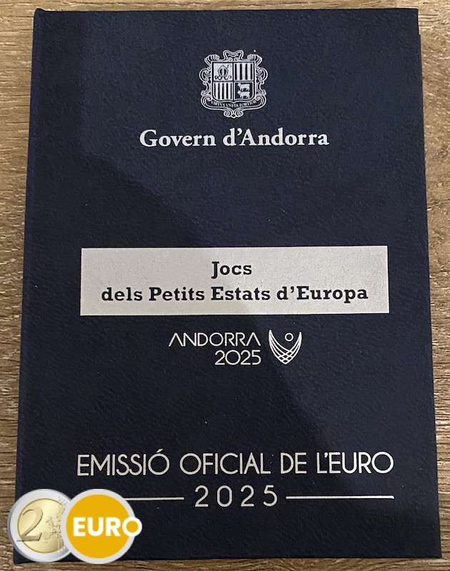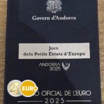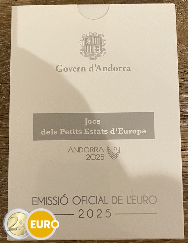 De kern van de munt toont verschillende sportelementen, waaronder ballen van verschillende sporten, met gestileerde netten als achtergrond. Ze hebben allemaal een dynamische stijl die beweging en energie uitstraalt. Bovenaan staat het opschrift “Jocs dels Petits Estats d’Europa” en onderaan staat “ANDORRA 2025”.
