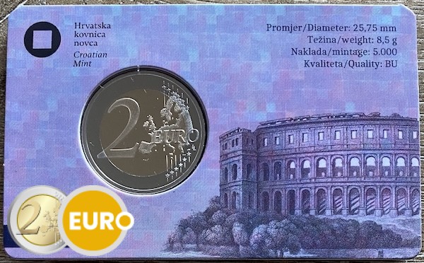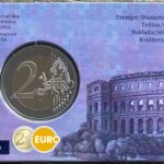 Deze 2 euro commemorative munt eert het Amfitheater van Pula, een van de best bewaarde Romeinse arena’s ter wereld. Dit indrukwekkende bouwwerk uit de 1e eeuw is een symbool van Kroatië’s rijke erfgoed en geschiedenis.