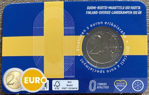 Deze 2 euro commemorative viert de 100e verjaardag van de Atletiekspelen Finland-Zweden, een iconische sportwedstrijd die de lange traditie van vriendschappelijke competitie tussen beide landen symboliseert.