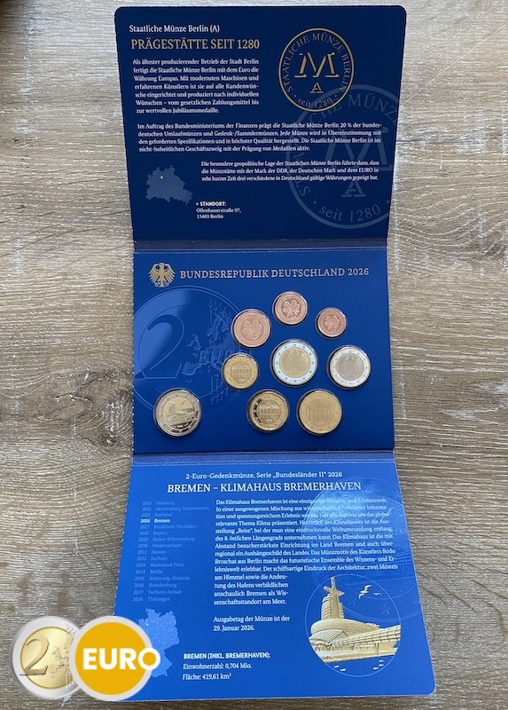 Met de munten van 1 cent tot 2 euro + 2 euro commemorative Bremen